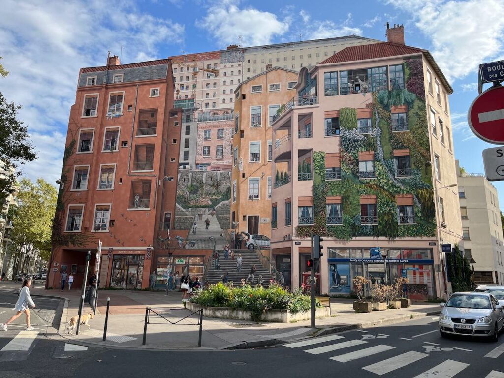 Le Mur des Canuts (it’s a trompe-l’œil — the wall is completely flat)